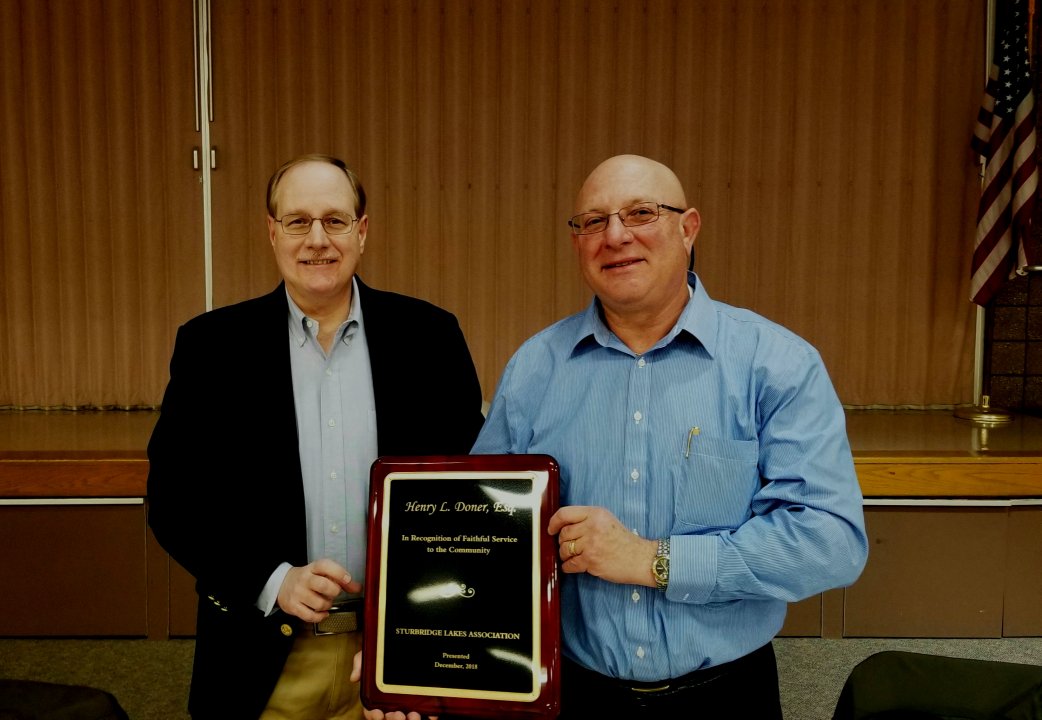 Ed Ferruggia presented Henry Donner an appreciation commemorative plaque for his many years of service on the board as he is retiring from the board.
